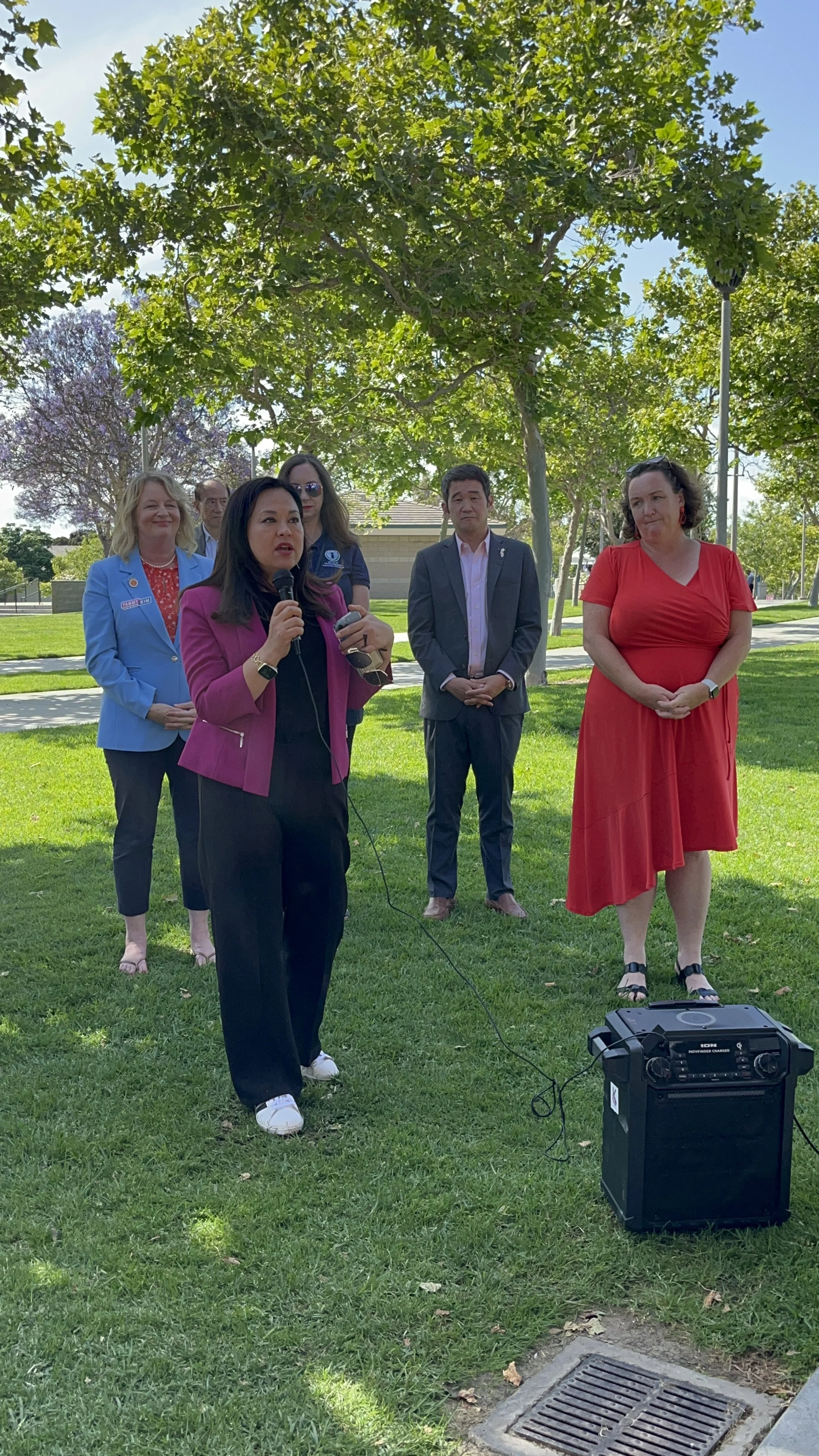 Add the sun to the long list of Tammy Kim’s endorsements for her bid to be Irvine’s next mayor. After a drizzly Sunday morning on June 9, the clouds parted just in time to give Irvine City Councilmember Kim a sunny venue to officially kick off her mayoral campaign at Mike Ward Community Park.
